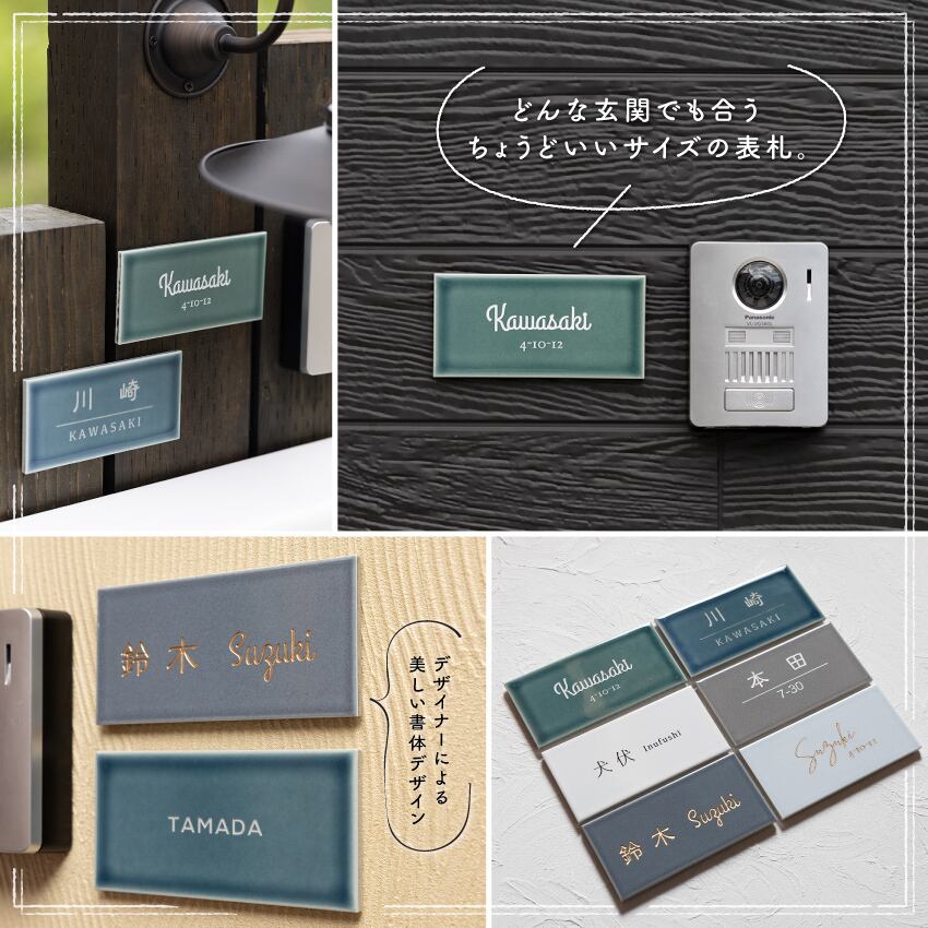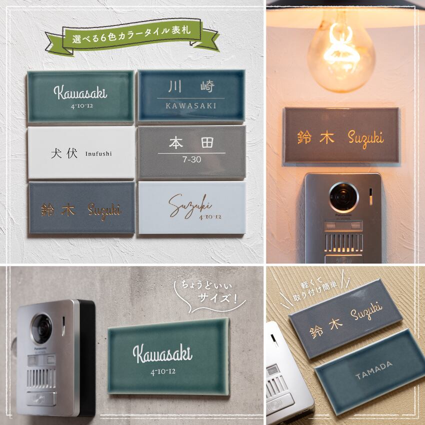 どんな玄関でも合うちょうどいいサイズ! 軽くて取り付けも簡単! デザイナーによる美しい書体デザイン! 選べる北欧風のおしゃれな6色カラータイル表札!! 熟練職人によるサンドブラストの彫刻と、 長年安心して使える世界シェアNo.1の高級塗料使用! 世界中の良いものから選び抜かれた日本製のタイルを選別しました! ※焼き物特有の色むらがある場合がございます。製品の使用上ご了承くださいませ。