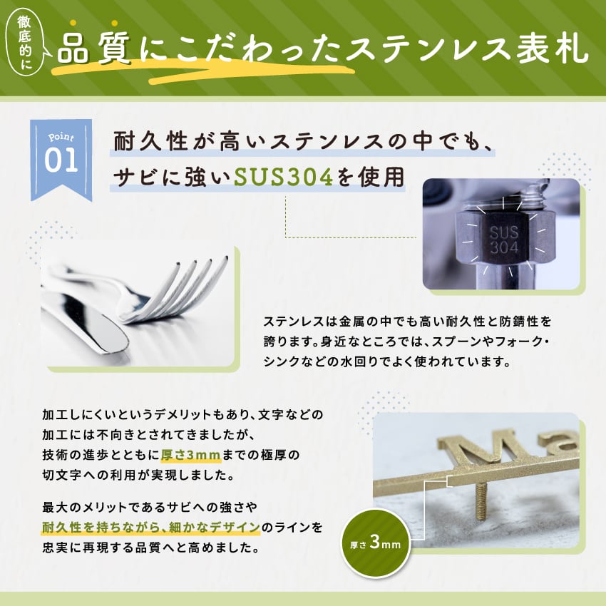 サビや劣化に強い最高級の品質と美しいデザイン性。 プレート表札には無い立体感とどんな外壁にも映えるスタイリッシュな仕上がりを実現しました。